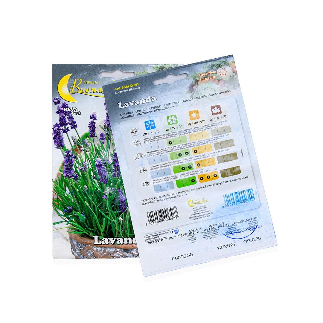 Lavender seeds grow into aromatic flowering plants known for their calming fragrance and purple blooms. Lavender is widely used for decoration, aromatherapy, and attracting pollinators to gardens.